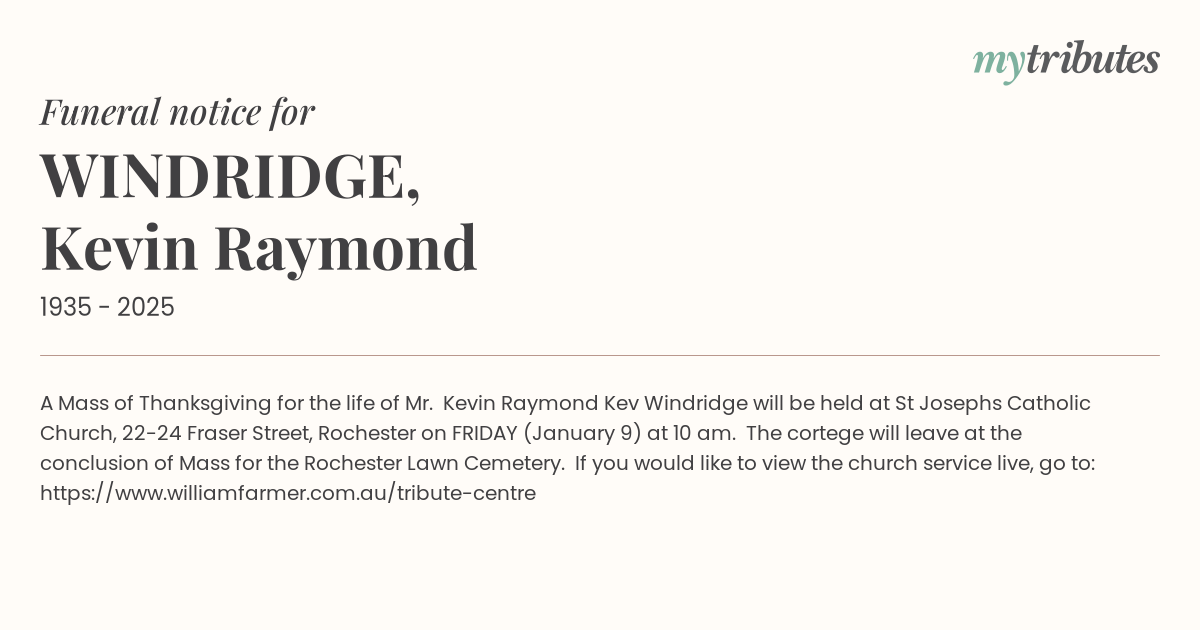 A Mass of Thanksgiving for the life of Mr. Kevin Raymond “Kev” Windridge