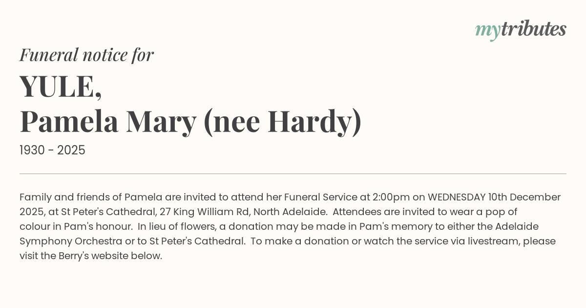 Attendees are invited to wear a pop of colour in Pam's honour.